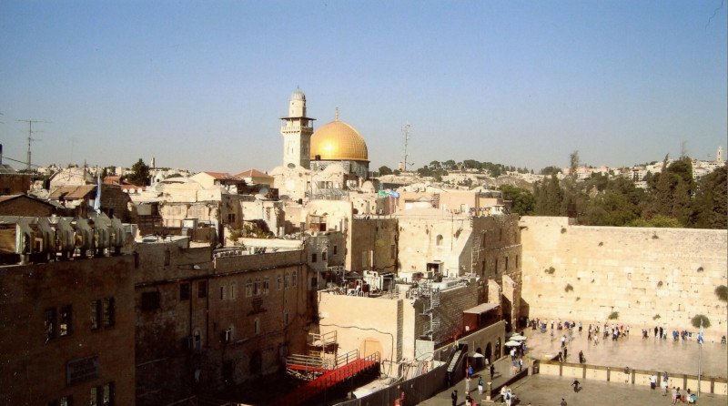 Vue sur le mur des Lamentations, le mont du Temple et le dôme du Rocher.